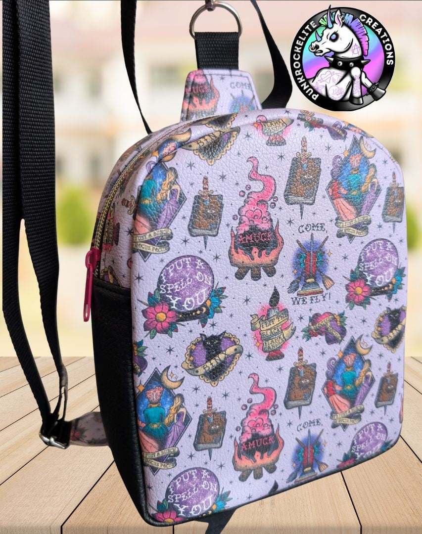 This Handmade sling backpack is perfect for days out when you don't want to carry a big bag. Great for carrying your items such as keys, phone and wallet, and even a can of juice! There is an interior zipper pocket for essentials. Can worn either on the back or front. The back carries 2 d-rings so can be worn across either left or right shoulder.